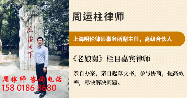 上海资深周运柱律师,资历深厚、以高胜诉率享誉业内,长期大量办理离婚财产分割、离婚纠纷、房产买卖、房产继承(遗嘱继承)、房产分割、房产确权纠纷、公房动迁款分割,拆迁款分割、借贷 、建设工程款、买卖合同、经济合同纠纷、刑事辩护。 周运柱律师是中国政法大学民商经济法学院硕士研究生,亲自办理案件超过1300件以上,有近15年法律服务经验。我们是上海规模排名靠前的大型律师楼,由150多名转业法官、检察官、知名资深律师组成,能够为国内、国际客户提供高标准、高质量的法律服务.1、周律师是上海明伦律师事务所副主任、合伙人,以过硬的执业精神赢得海内外客户的高度...更多>>